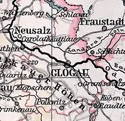 Bei der Kreisreform vom 1. Januar 1820 im Regierungsbezirk Liegnitz gab der Kreis Glogau die Stadt Schlawa sowie die Dörfer Aufzug, Beitsch, Deutsch Tarnau, Goihle, Groß Würbitz, Hammer, Josephshof, Kattersee, Klein Würbitz, Köllmchen, Krolckwitz, Laubegast, Liebenzig, Malschwitz, Mäusewinkel, Neuckersdorf, Nieder Bäsau, Ober Bäsau, Pürschkau, Rädichen, Schlawa, Sperlingswinkel und Zöbelwitz an den Kreis Freystadt sowie die Dörfer Grunwald, Jäschane, Kolzig, Lipke, Neu Otternstädt und Schlabrendorf an den Kreis Grünberg ab. Die Dörfer Böcken, Eisemost, Friedrichswalde, Gühlichen, Heinzendorf, Herbersdorf, Neudorf, Neuguth, Nieder Gläsersdorf, Ober Gläsersdorf, Parchau und Petersdorf wechselten aus dem Kreis Glogau in den Kreis Lüben.[6][7]