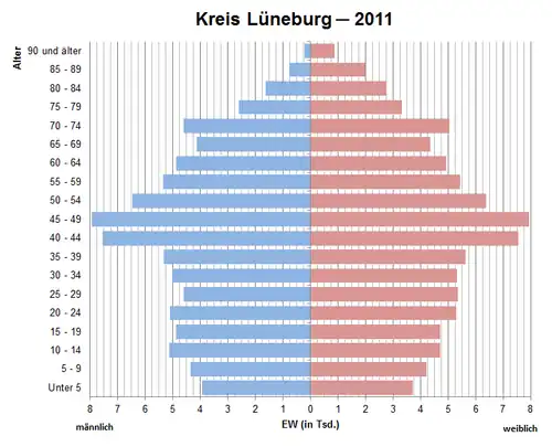 - ↑ Datenbank Zensus 2011, Kreis Lüneburg, Alter + Geschlecht ( vom 22. September 2021 im Internet Archive)