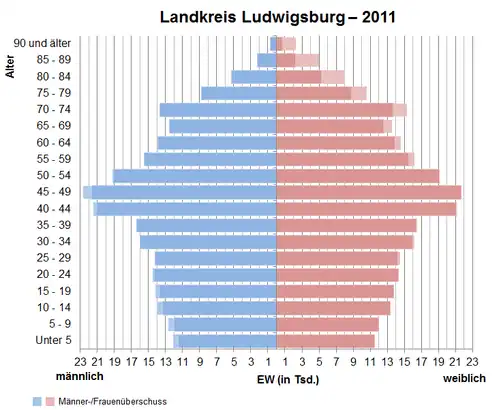- ↑ Archivierte Kopie ( vom 22. September 2021 im Internet Archive) Datenbank Zensus 2011, Kreis Ludwigsburg, Alter und Geschlecht