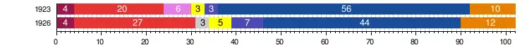 Nachfolgend sind die Sitzverteilungen seit 1917 dargestellt.[12][13][14][15][16][17][18][19][20]