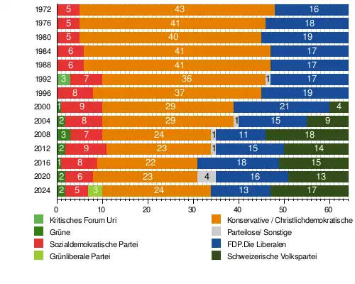 Nach den Wahlen von 1916 bis 2020 war die Sitzverteilung im Urner Landrat wie folgt: