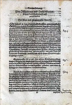 - ↑ laut einer Arbeit von Nikolaus v. Beckmann: Idea juris statuarii et consuetudinarii Stiriaci et Austriaci Graz 1688, zitiert nach Sergij Vilfan: Die Klausel des Landschadenbundes als rechtshistorisches Problem. In: Festschrift Berthold Sutter. Graz 1983, S. 446