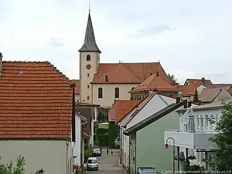 ![]() Blick über Landshausen zur katholischen Kirche Sankt Martin