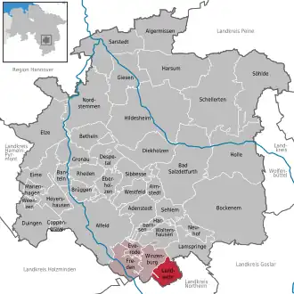 Die Orte der Landwehr sind der südlichste Punkt des Landkreises Hildesheim, nördlich von Bad Gandersheim zwischen den Bergen Sackwald und Helleberg.