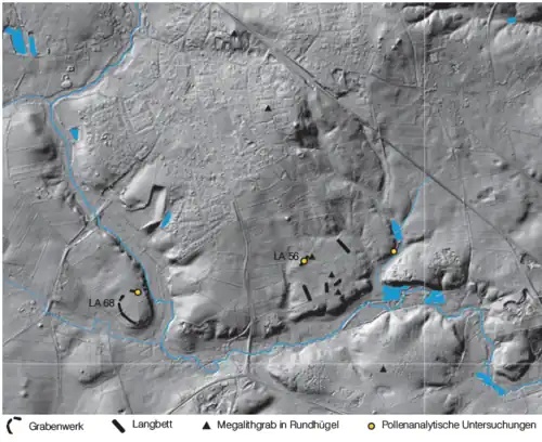 - ↑ Müller 2017: J. Müller, Großsteingräber, Grabenwerke, Langhügel: Frühe Monumentalbauten Mitteleuropas. Sonderheft Archäologie in Deutschland (WBG Darmstadt 2017).
