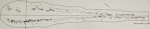 Grab 2 besitzt einen langgestreckten, nordwest-südöstlich orientierten dreieckigen Hügel. Der Hügel hat eine Länge von 93 m und eine Breite von 9 m an der südöstlichen Stirnseite. Die steinerne Umfassung ist schlechter erhalten als bei Grab 1. Die Anlage wies eine einzelne Bestattung auf. Bei dem Toten handelte es sich um einen etwa 50 Jahre alten Mann. Er lag direkt auf dem Boden entlang der Längsachse der Anlage, der Kopf wies nach Nordosten. Das Grab wies weder erkennbare Einbauten noch Beigaben auf. Aus der Hügelschüttung stammen über 200 Fundstücke, hauptsächlich Keramikscherben, aber auch Stein- und Feuerstein-Werkzeuge, Holzkohle sowie ein Vogelknochen.