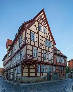 Das im Quedlinburger Denkmalverzeichnis als Wohnhaus eingetragene Gebäude befindet sich im Quedlinburger Stadtteil Westendorf. Es befindet sich in einer Ecklage der nach Osten abknickenden Straße und gehört zum UNESCO-Weltkulturerbe.