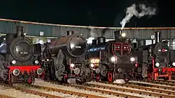 Dampflokomotivenparade bei der 21. Langen Nacht der Museen vor dem Ringlokschuppen des Eisenbahn- und Bergbaumuseums in Ampflwang