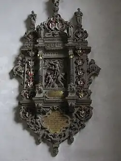 Wappen v. Langen unten links, Epitaph Heinrich von Korte 1592, Bad Holzhausen