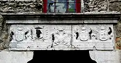 Ursprünglich hatte der Turm ein Kegeldach, das von einer Wetterfahne gekrönt wurde, heute besitzt er ein Flachdach mit Zinnen.