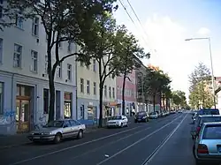 | Querstraßen | Heinersdorfer Straße, Jacobsohnstraße, Goethestraße, Friesickestraße, Rudolf-Baschant-Straße, Goyastraße, Roelckestraße, Behaimstraße, Börnestraße |