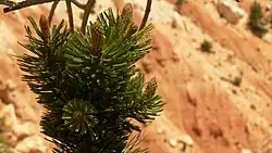 - Die Fuchsschwanz-Kiefer (Pinus balfouriana) hat praktisch keine Grannenfortsätze an den Zapfenschuppen.