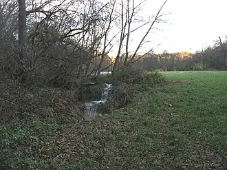![]() Der Lanzenbach kurz vor der Mündung zwischen Eschenauer und Ummenhofener Steinbruch in der Bühleraue | ||