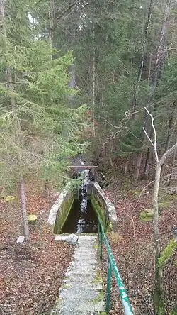 Auslass des Lanzenbachs aus dem Pollinger Weiher