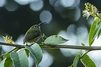 - Langschnabel-Nektarjala (Neodrepanis coruscans): Im Gegensatz zum Kurzschnabel-Nektarjala ist der Langschnabel-Nektarjala wesentlich besser bekannt. Dieser kleine, nur zehn Zentimeter lange und an Baumläufer erinnernde Vogel bewohnt weite Teile der Insel. Er besitzt einen langen, nach unten gebogenen Schnabel und ernährt sich von Insekten, die er von der Baumrinde pickt. Das Gefieder ist oben schillernd blau und unten gelb gefärbt. Über den Augen trägt er zwei große Hautlappen.