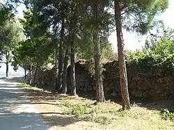 Von dem kleinen, etwa 100 m breiten und 70 m langen, alten Hafenbecken sind noch Teile der Kaimauern erhalten. Man vermutet, dass es sich bei den Fundamenten an der Hafeneinfahrt um die Grundmauern einer Brücke handelt, die den Hafen überspannte. Östlich des Hafens kann man noch die Grundmauern der Befestigung und der Türme sehen. Auf dieser Halbinsel befand sich vermutlich der von Pausanias erwähnte Dionysos-Tempel, in dem sich ein Standbild des Gottes befand.[11] Östlich hiervon lag ein weiterer Hafen von dem Reste einer antiken Hafenmole und weitere Kaimauern erhalten sind.