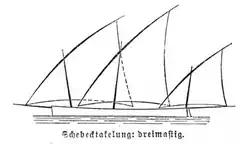 Das Gaffelsegel kann als Weiterentwicklung der Lateinertakelung angesehen werden.