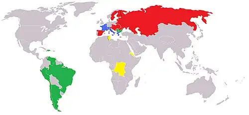 Folgende Staaten und Gebiete prägten Münzen nach demselben System, aber mit eigener nationaler Währungsbezeichnung, ohne der Münzunion offiziell beigetreten zu sein: