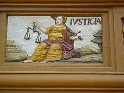 Das Bildprogramm umfasst neben Engeln und Karyatiden[8]: