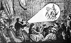 In den Anfangsjahren der Laterna magica malten die Projektionskünstler die Laternbilder oder vergaben Aufträge. Sie nutzten die Illusionswirkung von Lichtbildern im dunklen Raum oftmals, um sie als Wirklichkeit erscheinen zu lassen. Dafür wurde die Laterna magica so aufgestellt, dass sie für die Zuschauer nicht sichtbar war. Im Theater der Goethezeit diente Bühnennebel als Projektionsfläche, sodass, wenn der Effekt zur Szene passte, der Eindruck von frei schwebenden Figuren entstand. Mit diesen Geisterdarstellungen, sogenannten Phantasmagorien, etablierte sich die Laterna magica auch außerhalb des Theaters als professionelles Unterhaltungsmedium. Ihre Blütezeit hatten die Phantasmagorien im späten 18. und frühen 19. Jahrhundert. Aufgrund der Wirkung dieser Projektionen war die Laterna magica auch unter dem Namen „Schreckenslaterne“ bekannt.