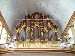 Die Orgel der Laubacher Stadtkirche geht auf ein Werk zurück, das zwischen 1747 und 1750 von den thüringischen Orgelbauern Johann Casper Beck und Johann Michael Wagner gebaut wurde. Mitarbeiter war der junge Johann Andreas Heinemann.[5] 1965 wurde ein drittes Manual ergänzt. 2010 restaurierte die Orgelbaufirma Förster & Nicolaus das Instrument. Mit dem Einbau einer Doppelregistertraktur wurde eine Setzeranlage verwirklicht. Die Disposition mit 31 Registern lautet wie folgt:[6]