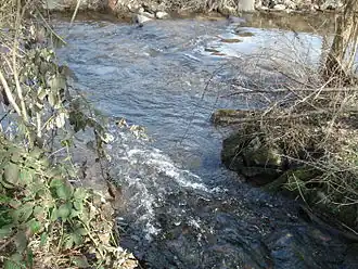 Der Laudenbach (vorne rechts) mündet in die Kahl (von rechts nach links) | ||