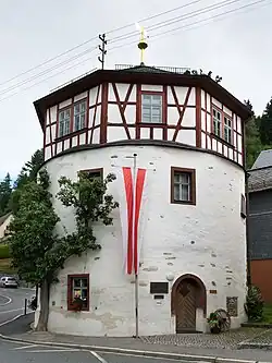 Bei dem Gebäude handelt es sich um einen dreigeschossigen, turmartigen Rundbau mit einem Durchmesser von etwa zehn Metern. Die beiden unteren Geschosse bestehen aus Bruchsteinmauerwerk, das oberste Geschoss, das einen achteckigen Grundriss besitzt und von einem Zeltdach bekrönt wird, wurde in Fachwerkbauweise errichtet. Die Mauern des Erdgeschosses, die im Inneren acht halbkreisförmige Nischen beherbergen, weisen eine Stärke von zwei Metern auf, das erste Obergeschoss besitzt eine Mauerstärke von einem Meter.[1][2]