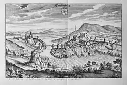 Im Dreißigjährigen Krieg waren Laufenburg und das Fricktal zeitweise von den Schweden besetzt. Herzog Federigo Savelli geriet in der Schlacht bei Rheinfelden in Gefangenschaft und wurde im Rathaus von Laufenburg eingesperrt, konnte aber mit Hilfe einer Frau fliehen. Aus Rache für seine Flucht über den Rhein (bei Hüningen, da die andern Brücken zerstört waren) in die Schweiz wurden der Pfarrer, der Kaplan und ein schwedischer Feldweibel (dieser wegen des Verlassens seines Postens) kurz darauf auf Anordnung Johanns von Nassau und Johann Ludwigs von Erlach in der Bluttat von Laufenburg hingerichtet.[5]