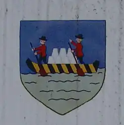 Das Siegelrecht wird in einem Brief von Albrecht VI. am 29. September 1460 erstmals erwähnt. Die älteste Handzeichnung des Wappens datiert aus dem Jahr 1720. Das Wappen zeigt auf blauem Grund eine schwarz-gelb gestreifte Salzzille im Fluss, in der sich zwei mit rotbraunem Rock, schwarzen Hüten, Bundhosen und blauen Stutzen bekleidete Schiffsleute befinden. Der vordere Schiffer führt das Ruder mit beiden Händen, der Rückwärtige mit der linken Hand. Mit der rechten Hand zeigt er offensichtlich auf den „Wilden Lauffen“. Die erst 2012 verliehenen Marktfarben sind, abgeleitet vom Wappen, Schwarz – Gelb – Blau.[3]