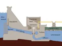 - ↑ Jürgen Giesecke, Emil Mosonyi, Stephan Heimerl: Wasserkraftanlagen: Planung, Bau und Betrieb. Springer Science & Business Media, 2009, ISBN 978-3-540-88988-5, S. 109 (google.ch [abgerufen am 6. August 2021]).
