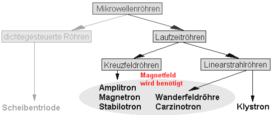 - Bei Linearstrahlröhren wird ein zusätzliches magnetisches Feld außer beim Gyrotron nur zur Fokussierung des Elektronenstrahls verwendet.