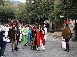 Im Vallo di Lauro mit seinem Hauptort Lauro gibt es eine eindrucksvolle Tradition der Begehung der Karwoche. Am Karfreitag findet eine große Prozession statt, an deren Ende auf dem Hauptplatz in Weiß gekleidete Gruppen (sogenannte Biancovestiti) aus den verschiedenen umliegenden Orten alte heilige Gesänge im kampanischen Dialekt vortragen.[2][3] An der Prozession nehmen auch historisch gekleidete Personen mit den Arma Christi teil, und im benachbarten Taurano wird die Passion Jesu als Sacra rappresentazione vivente gespielt.[4] Nach Deutschland eingewanderte Lauretani haben aufgrund dieser Vorbilder das Passionsspiel in Bensheim an der Bergstraße begründet und gestaltet.[5]