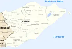 - ↑ a b Timor-Leste Portal Municipal: MUNICIPALITIES PROFILE LAUTÈM, abgerufen am 6. September 2020.