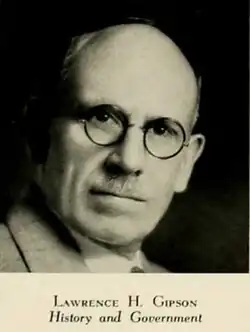 - ↑ John Shy: The Empire Remembered: Lawrence Henry Gipson, Historian, S. 112; Vgl. Gipsons autobiografische Reflections (Seite nicht mehr abrufbar, festgestellt im März 2022. Suche in Webarchiven) Info: Der Link wurde automatisch als defekt markiert. Bitte prüfe den Link gemäß Anleitung und entferne dann diesen Hinweis.. In: Pennsylvania History 36, Heft 1, 1969, S. 10–15.