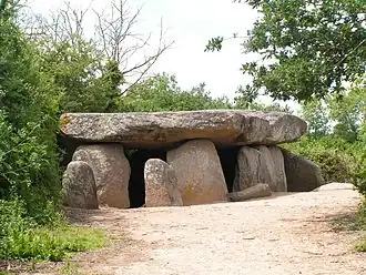 - In der Umgebung des Ortes stehen mehrere Dolmen, (z. B. Dolmen de la Cour-du-Breuil, Dolmen des Pierres Folles du Plessis) darunter auch solche, die als Monument historique anerkannt sind.[3][4][5] Aber auch die nur ca. 300 m nördlich des Ortes gelegenen drei Dolmen von Savatole sind sehenswert.