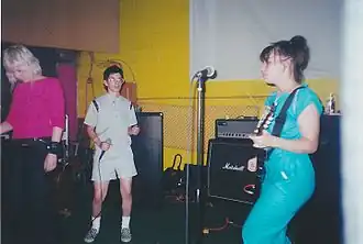 Le Tigre ist eine US-amerikanische feministische Rockband, bestehend aus den Mitgliedern Kathleen Hanna, Johanna Fateman und JD Samson. Als „Fröhliche Kämpferinnen“[2] wurden Le Tigre von Kerstin Grether bezeichnet. Auch wurden sie oft als Nachfolgerinnen der Riot-Grrrl-Bewegung beschrieben – von Kathleen Hanna heißt es, sie sei „probably the biggest proponent, educator, and symbol of riot grrrl, a ideology that refocused feminism in a specifically insurgent but playful way“. (deutsch: wahrscheinlich die größte Befürworterin, Erzieherin und Symbolfigur von Riot Grrrl, einer Ideologie, die den Feminismus auf eine spezifisch rebellische, aber spielerische Weise neu ausrichtete.)[3].