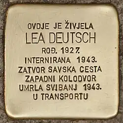 2020 wurde in Zagreb der erste Stolperstein verlegt, er erinnert an Lea Deutsch.