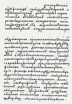 - ↑ a b Radoslav Večerka: Staroslověnská etapa českého písemnictví. Nakladatelství Lidové Noviny, Praha 2010, ISBN 978-80-7422-044-9, S. 71 (tschechisch, 176 S.).