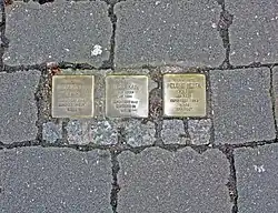 Zu Beginn der Herrschaft des Nationalsozialismus lebten in Lechenich 74 Juden.[69] Am 1. April 1933 erfolgte auch in Lechenich ein Aufruf zum Boykott jüdischer Geschäfte. Am 10. November 1938 wurde die 1886 erbaute Synagoge in Brand gesteckt und die jüdischen Geschäfte und Wohnungen demoliert. Jüdische Familien, die nicht ausgewandert waren, wurden 1942 deportiert und in den Vernichtungslagern umgebracht.