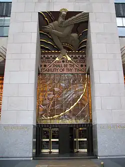 Nach dem Tode Goodhues arbeitete Lee Lawrie mit verschiedenen Architekten zusammen und entwickelte dabei seinen dekorativen Stil weiter. Anfang der 1930er-Jahre war Lawrie für die Dekoration des von Raymond Hood entworfenen Rockefeller Centers verantwortlich. Lawrie gestaltete unter anderem die Portale des GE Buildings (Friese Wisdom und Sound) und des International Buildings (Wanduhr und Relief The Purpose of the International Building), seine bekannteste Arbeit ist aber die – für Lawries Schaffen eher untypische – Atlas-Statue an der Fifth Avenue gegenüber der St. Patrick’s Cathedral. 1931 wurde er in die American Academy of Arts and Letters gewählt.[2]