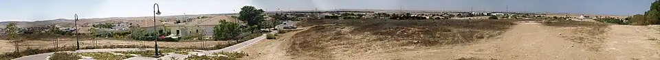 Die Stadt liegt in der halbwüstenhaften Übergangszone des Negevs am Übergang zu Schfelah im Norden und Judäischem Bergland im Osten. Die Abweidung der umliegenden Felder ist von hoher wirtschaftlicher Bedeutung für die benachbarten Beduinen. Im Osten erhebt sich der 518 Meter hohe Har Lehavim (hebräisch הַר לְהָבִים), auf dem und um den sich das Waldgebiet Jaʿar Lahav (hebräisch יַעַר לַהַב) erstreckt, das seit 1952 durch Wiederaufforstung in mehreren Etappen entstand.