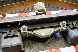 Daneben befindet sich die Weiche 2a, die durch einen Gelenkspitzenverschluss der alten Bauweise verschlossen ist.