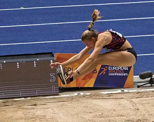 Drittbeste Weitspringerin: Hanne Maudens, am Ende Zehnte dieses Siebenkampfs