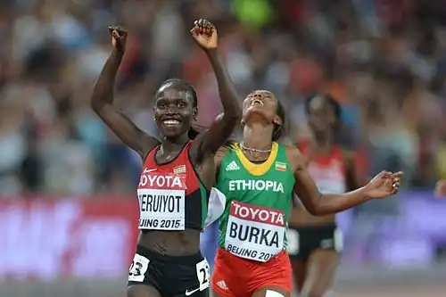 - Vivian Cheruiyot, Kenia – 10.000 Meter: zweiter Sieg nach 2011, zuvor zweifache Weltmeisterin über 5000 Meter (2009/2011), damit jetzt vierfache Weltmeisterin