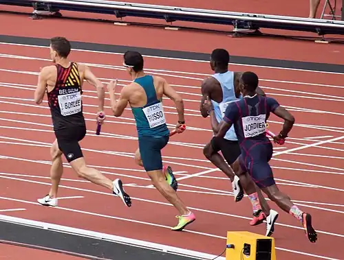 - 2:58,12 min – Trinidad und Tobago (Jarrin Solomon, Jereem Richards, Machel Cedenio, Lalonde Gordon), Finale am 13. August