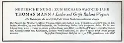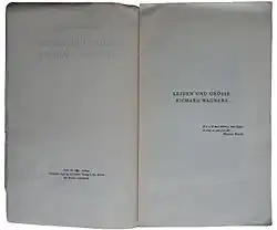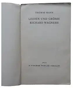 • Th. M.: Leiden und Größe Richard Wagners. In: Gesammelte Werke in 13 Bänden, Band 9. S. Fischer, Frankfurt 1974, ISBN 3-10-048177-1, S. 363–427; als TB z. B. ebd. 1995 ISBN 3-596-10310-X