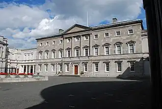 1924 wurde der Plan, das Royal Hospital in ein Parlamentsgebäude umzubauen, aufgrund von finanziellen Problemen aufgegeben. Stattdessen wurde Leinster House gekauft, das in der Zukunft ausgebaut werden sollte. Der Senat (Oberhaus) wurde im Ballsaal untergebracht und weitere Flügel des benachbarten Royal College of Science als Regierungsgebäude genutzt. Der Rest des Gebäudes des Royal College of Science wurde 1990 – zu dieser Zeit war es bereits mit dem University College Dublin verschmolzen – komplett übernommen und in ein modernes Regierungsgebäude umgewandelt. Sowohl die Nationalbibliothek als auch das Nationalmuseum befinden sich noch immer in Flügeln des Leinster House, die nicht mit dem Regierungskomplex verbunden sind. Obwohl es immer wieder Pläne gab, ein neues Parlamentsgebäude (z. B. im Phoenix Park oder im Custom House) zu errichten, blieb die Regierung bis heute im Leinster House.