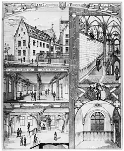 Auf der dem Dom zugewandten nördlichen Frontseite befinden sich im Erdgeschoss drei mit Spitzbögen ausgeführte Portale ins Innere. Der erste Stock weist sieben relativ großformatige Kreuzstockfenster an der Nord- und Südseite auf und vier an der Westseite. Das Erdgeschoss hatte zwei Fenster, dazu ein eher untypisches, mit Maßwerk verziertes Bogenfenster. Es war seit Umbauten 1890 bis 1892 bis zur Rekonstruktion in den 1980er Jahren Teil einer als Raum eigenständigen Kapelle im Erdgeschoss.