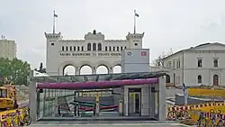 Der Bayerische Bahnhof in Leipzig liegt südöstlich der Leipziger Altstadt südlich des Bayrischen Platzes. Der Bahnhof wurde 1842 von der Sächsisch-Bayerischen Eisenbahn-Compagnie in Betrieb genommen und galt bis zu seiner Schließung im Jahr 2001 als der älteste in Betrieb befindliche Kopfbahnhof Deutschlands (andere Quellen sprechen vom ältesten noch erhaltenen Kopfbahnhof der Welt[1]). Die Gleisanlagen wurden im Rahmen der Bauarbeiten für den City-Tunnel Leipzig vollständig abgebrochen. An ihre Stelle trat eine unterirdische Station, die im Dezember 2013 in Betrieb genommen wurde.