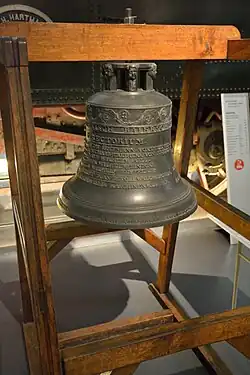 Die alte Bahnhofsglocke von 1842 als Ausstellungsstück im Verkehrsmuseum Dresden